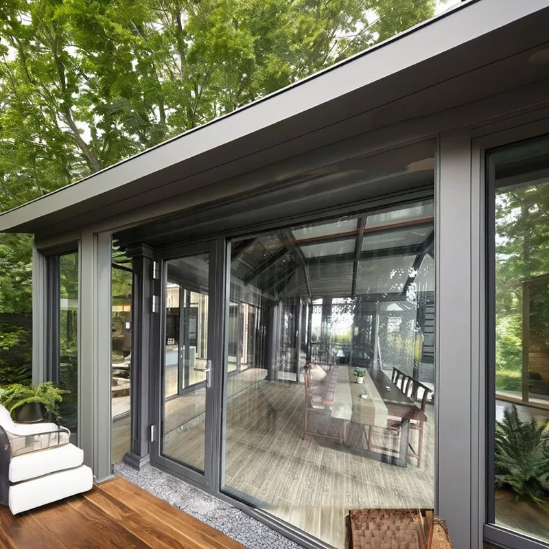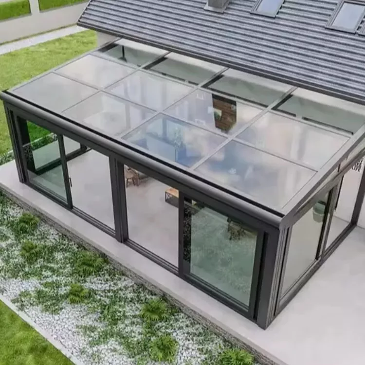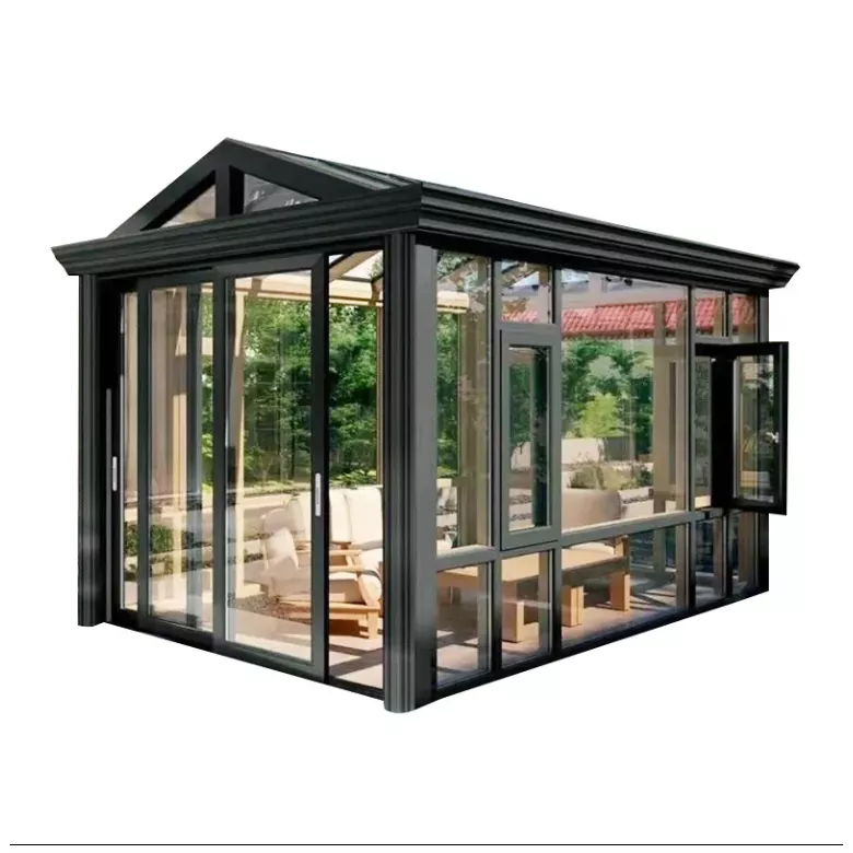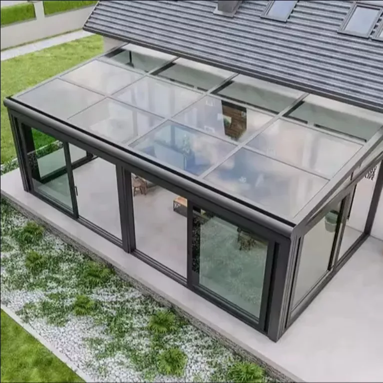 Sončna soba iz aluminijeve zlitine ima celoten okvir in stekleno kompozitno strukturo. Stebri in tramovi so pritrjeni z natančni konektorji s tesnilom in vodoodporno obdelavo na spojih; 3%-5% drenažni naklon je rezerviran za vrh steklo, usklajeno s skritimi odtočnimi kanali, da se prepreči nabiranje in puščanje vode; barve okvirja lahko prilagodite, podpira različne površinske obdelave, kot so motno, šampanjsko zlato in kava, prilagajanje različnim arhitekturnim stilov. Z združevanjem prej omenjene izdelave in prednosti celoten dizajn uravnoteži praktičnost in varnost in estetiko ter jih je mogoče natančno prilagoditi glede na dimenzije terase.