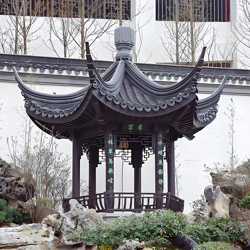 Shandong Duoping New Material Technology Co., Ltd. je strokovno podjetje za raziskave in razvoj, proizvodnjo in dobavitelj paviljonov v slogu Huizhou. Sklicujoč se na tradicionalno starodavno arhitekturno mojstrstvo Huizhouja, izdelavo konstrukcij z zarezo in čepom ter temeljne tehnologije ročno izdelane opeke in lesenih rezbarij posnemamo klasično obliko arhitekture Huizhouja s "črnimi ploščicami, belimi stenami, obrnjenimi napušči in dvignjenimi vogali". Ustvarjamo paviljonske izdelke v slogu Huizhou, ki združujejo starodavni arhitekturni šarm, stabilnost, vzdržljivost in kulturno teksturo. Kot temeljna krajinska arhitektura za vrtove v slogu Huizhou in prizore v kitajskem slogu se naši paviljoni pogosto uporabljajo na dvoriščih v slogu Huizhou, starodavnih slikovitih krajih, domačih hišah v kitajskem slogu, občinskih vrtovih in drugih scenarijih. Z rešitvijo "tradicionalna izdelava + sodobna zaščita pred korozijo" podedujemo kulturo Huizhou. Iskreno se veselimo sodelovanja z vami pri zagotavljanju prilagojenih rešitev za različne krajinske projekte v slogu Huizhou.
