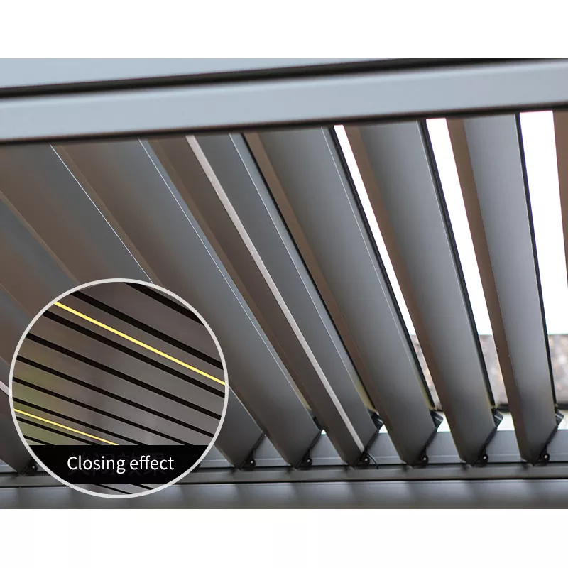 Glavni inteligentni moduli so bili podvrženi strogemu testiranju. Senčnik poganja tihi motor, ki se odpira in zapira gladko in brez hrupa, hod pa je mogoče natančno nastaviti; senzor za veter in dež lahko spremlja količino padavin in hitrost vetra v realnem času ter samodejno zapre senčnik, ko je dosežen nastavljeni prag, da zaščiti varnost opreme; svetlobni modul podpira preklapljanje med načini tople svetlobe, hladne svetlobe in gradienta za prilagajanje različnim potrebam scenarijev. Končni izdelki morajo opraviti več testov, kot so strukturna stabilnost, odzivna hitrost inteligentnega krmiljenja, vodoodpornost in odpornost na vremenske vplive, da se zagotovi brez deformacije profila, brez zakasnitve inteligentnih ukazov in kvalificirana hidroizolacija komponent, preden zapustijo tovarno, kar uravnoteži standardizirano množično proizvodnjo in personalizirano prilagoditev inteligentne nadzorne funkcije.