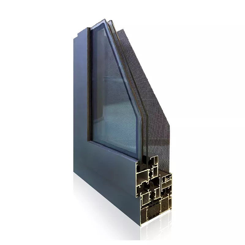 Celotna struktura ima zasnovo toplotnega ločevanja "okvir iz aluminijeve zlitine + toplotni trak PA66 + izolirano kaljeno steklo Low-E". Toplotni trak deli okvir iz aluminijeve zlitine na notranji in zunanji del ter učinkovito blokira prevajanje toplote. Vgrajena ojačitvena rebra v okvirju povečajo splošno nosilnost in odpornost proti vetru. Povezava okvir-krilo ima stopničasto večslojno tesnilno strukturo s tesnilnimi trakovi EPDM za povečanje zračne in vodotesnosti. Izolirana plast z argonom dodatno izboljša toplotno izolacijo.